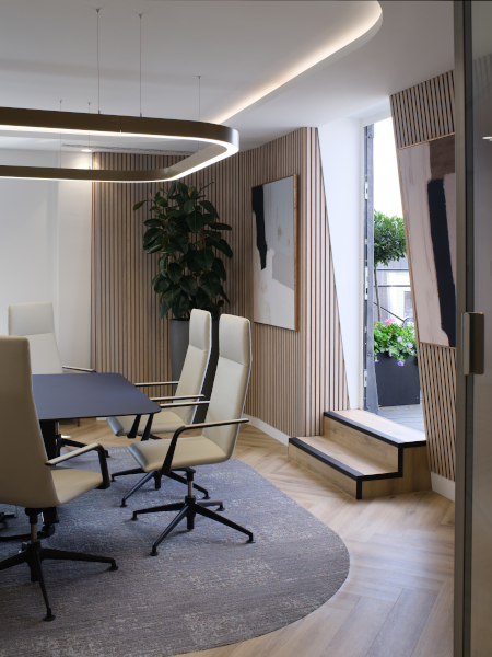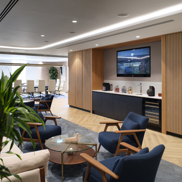 The new London office for AssuredPartners, one of the fastest growing insurance brokers in the US, has completed to create an outstanding working environment for its team. The design included a reception lounge area that could be adapted into a town hall space by opening up the boardroom glass wall, a suite of meeting rooms for clients, and a comfortable break out area for the staff.